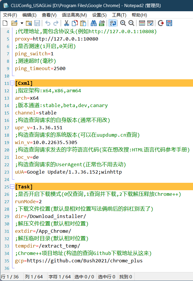配置文件中 runMode= (0仅查询模式,1查询并下载模式,2下载解压释放Chrome++)