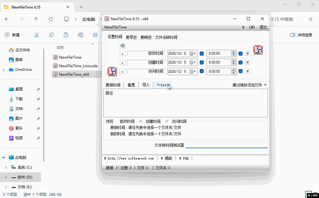 官方下载地址:http://www.softwareok.com/?Download=NewFileTime